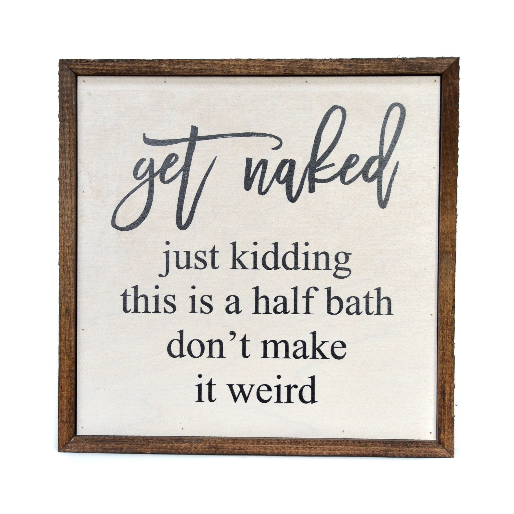 This is the perfect Funny Get Naked Quote Sign to add to your Farmhouse Decor! Sure to make everyone smile and laugh when they see it! All signs are made in Wisconsin with a rustic touch. Our Get Naked sign is perfect to spice up your bathroom decor.