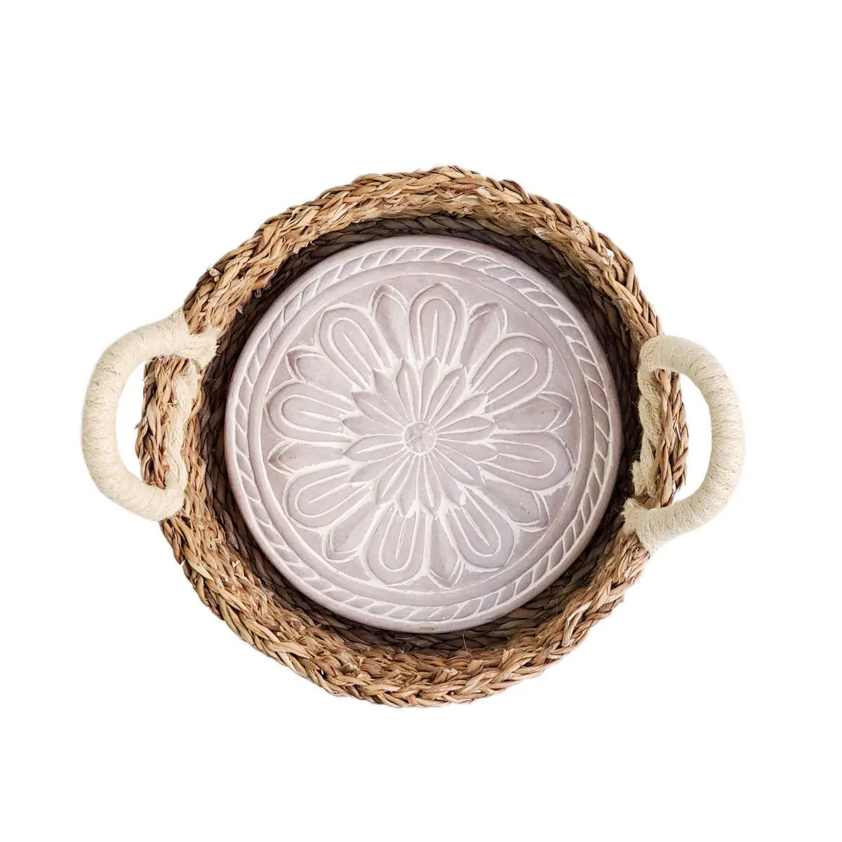 Material: * (Bread Warmer) 100% Terra Cotta * (Basket) 100% Seagrass and Jute wool
