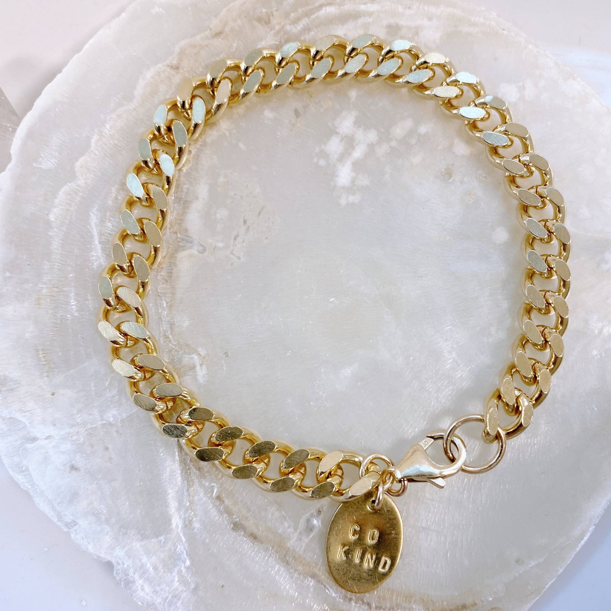 This curb chain bracelet is a must-have and goes perfectly with our curb chain necklace.