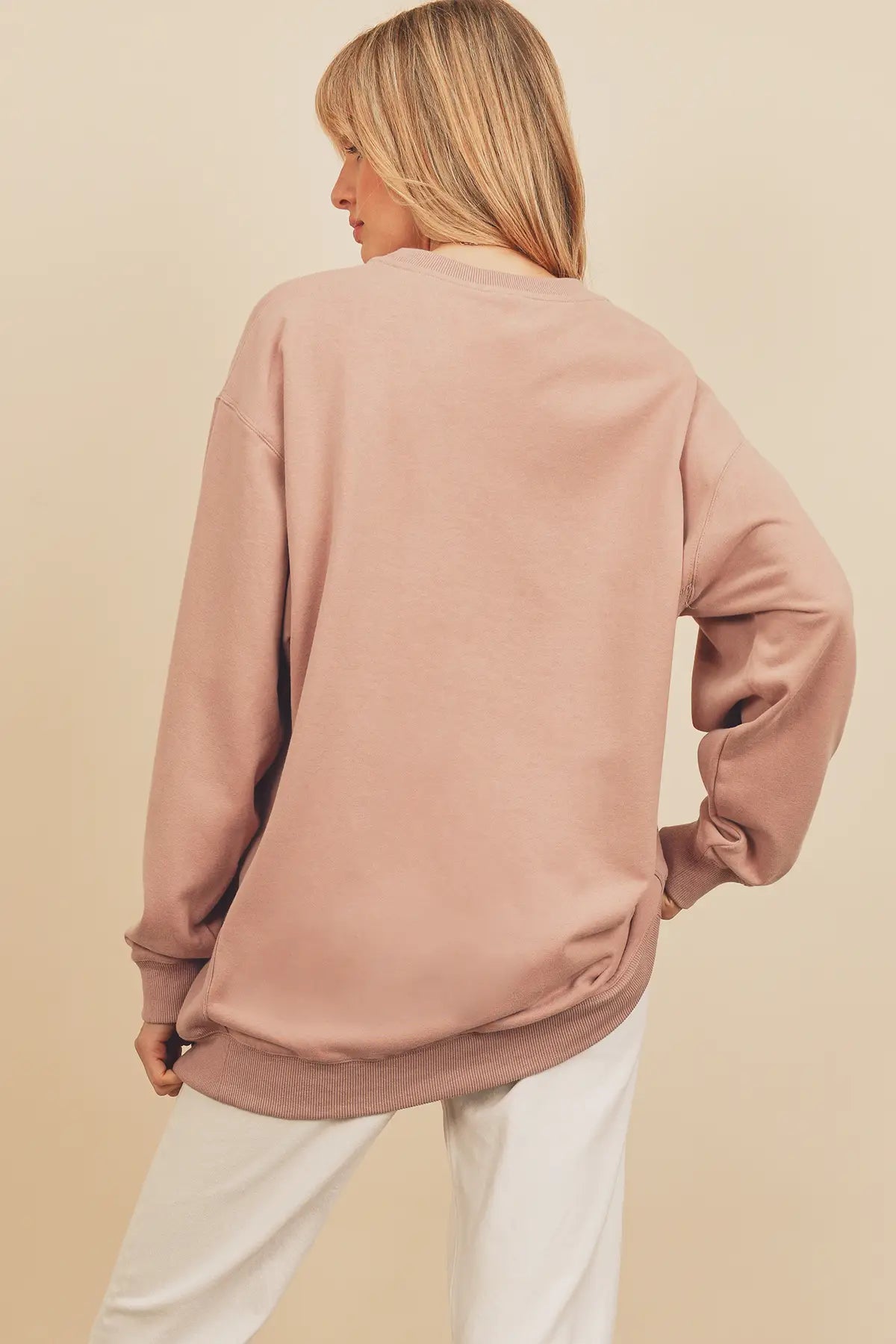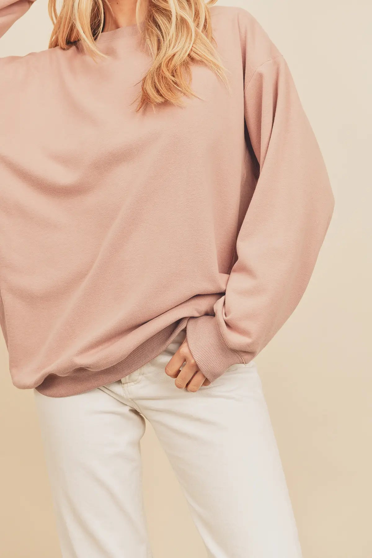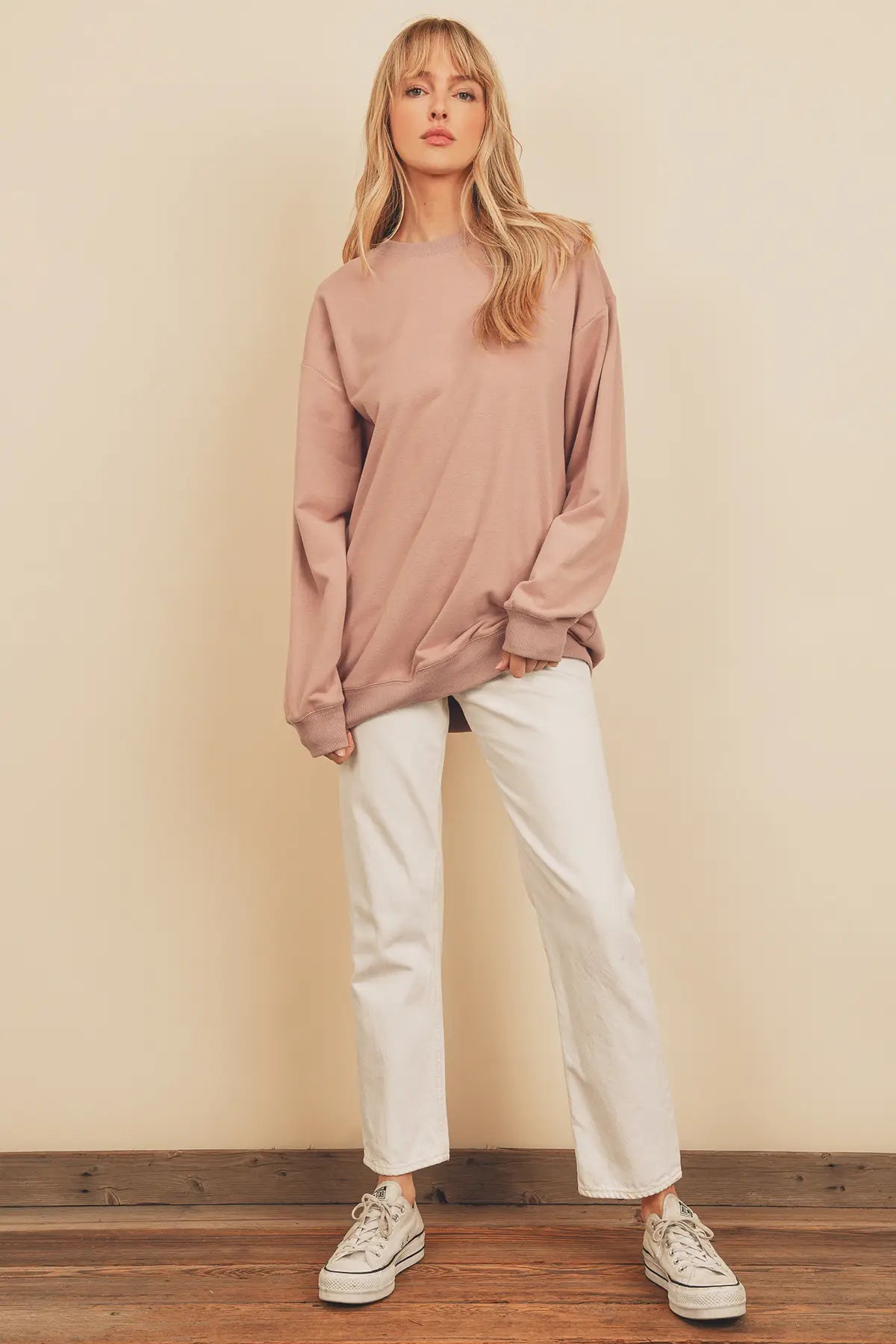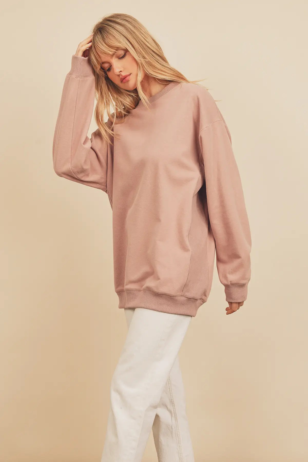 This is an oversized crew neck sweatshirt with side ribbing panel details.