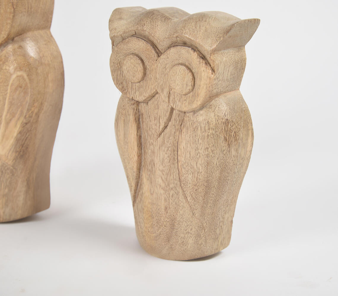 Raw Hand Carved Wooden Owl Figurines (Set of 2)