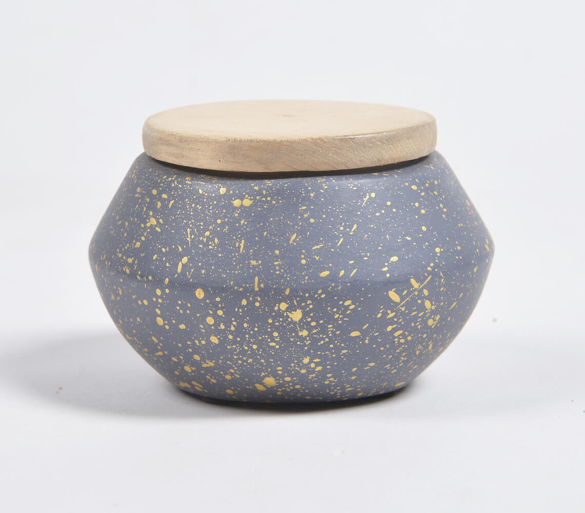 This beautiful concrete jar houses the a candle that comes with a natural wooden lid to store after every use. Melted wax, scented with natural fragrance oils is hand poured in the concrete mold by artisans with love, sans machines. Ideal to style minimal and contemporary living spaces, you need no festive occasion to treat yourself to this therapeutic candle or to light up every corner with its elegant vibe!