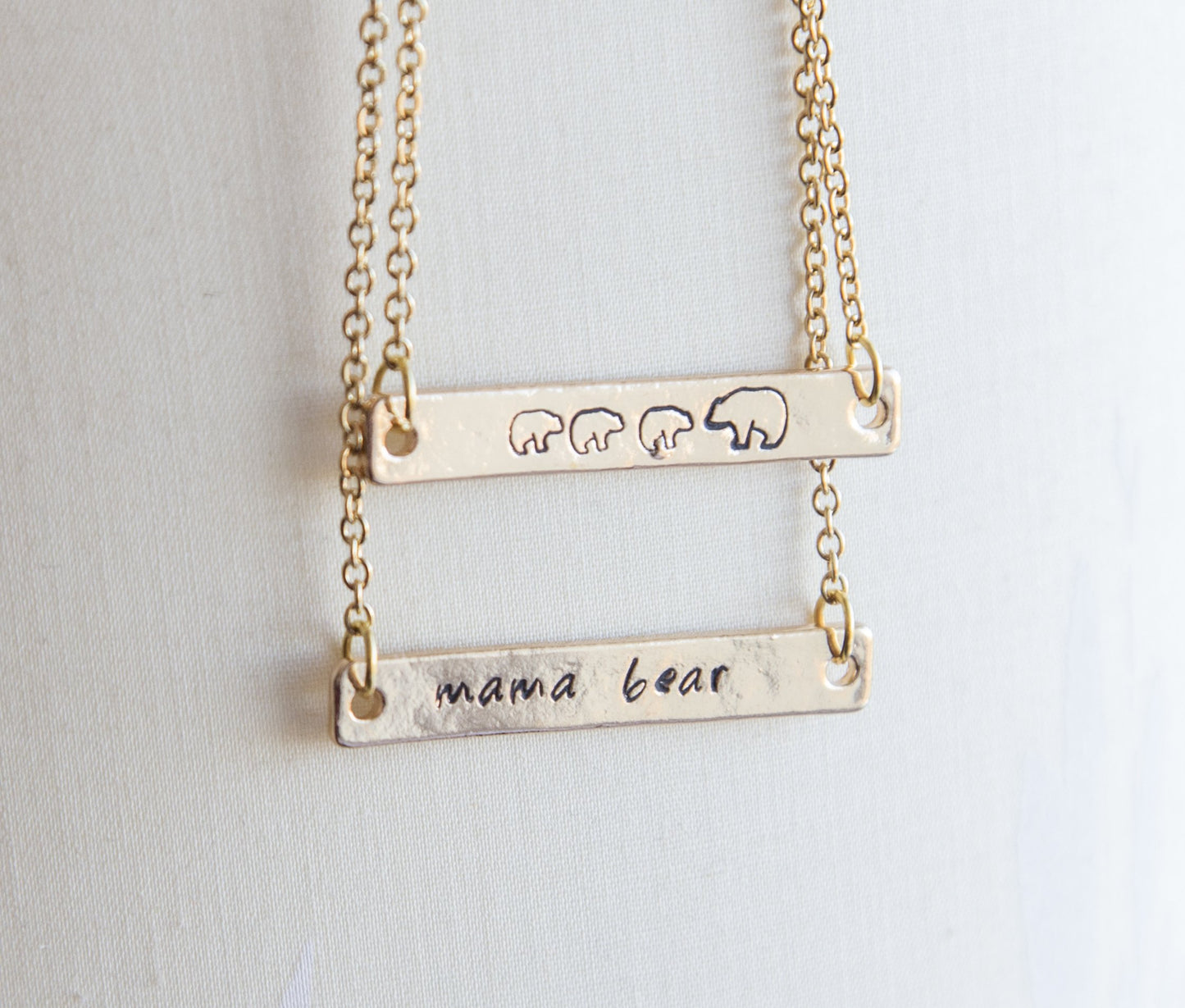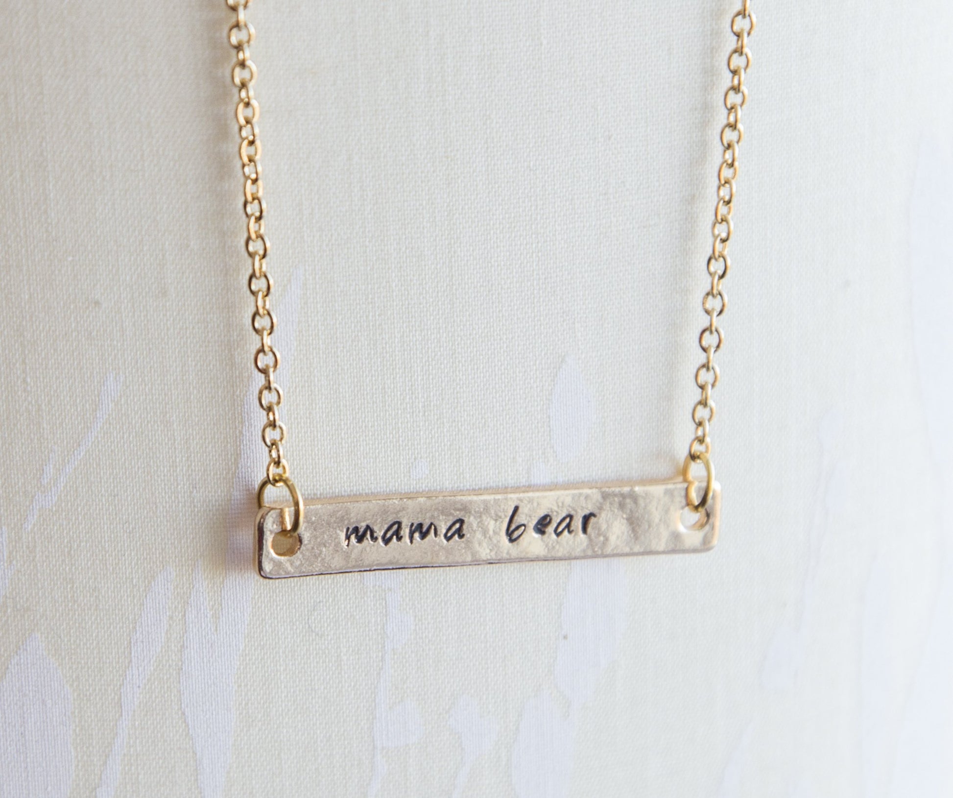 Mama bear necklace, mama and bear cub necklace, hand stamped bar