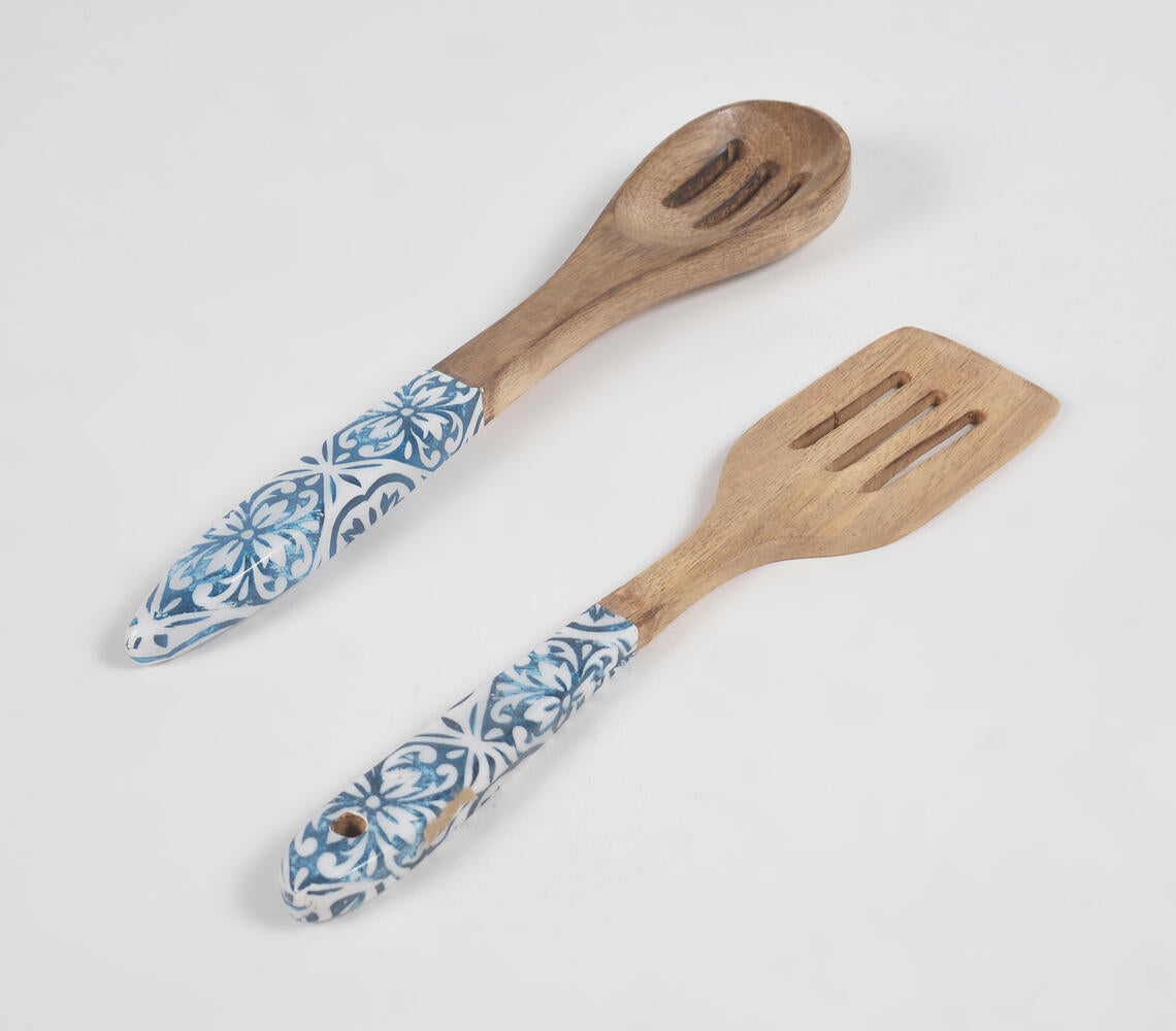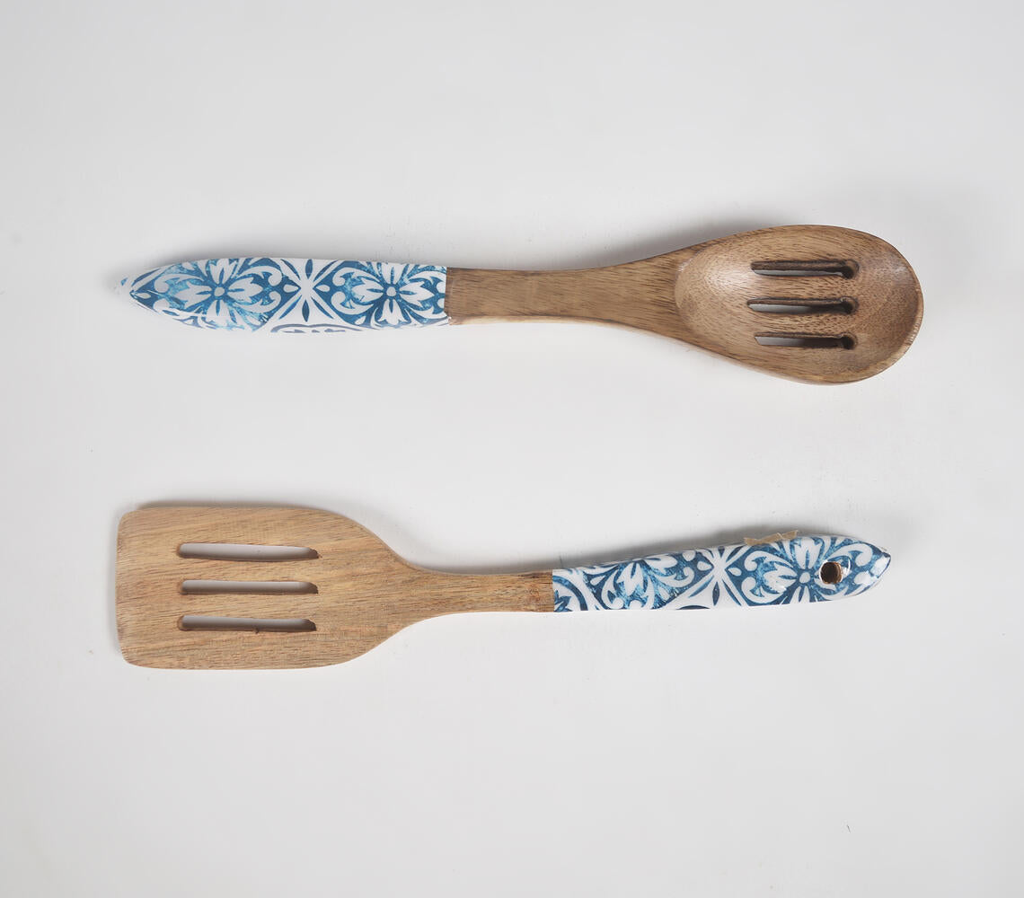 Indigo Meena print Light burnt Wooden Spatulas (set of 2)