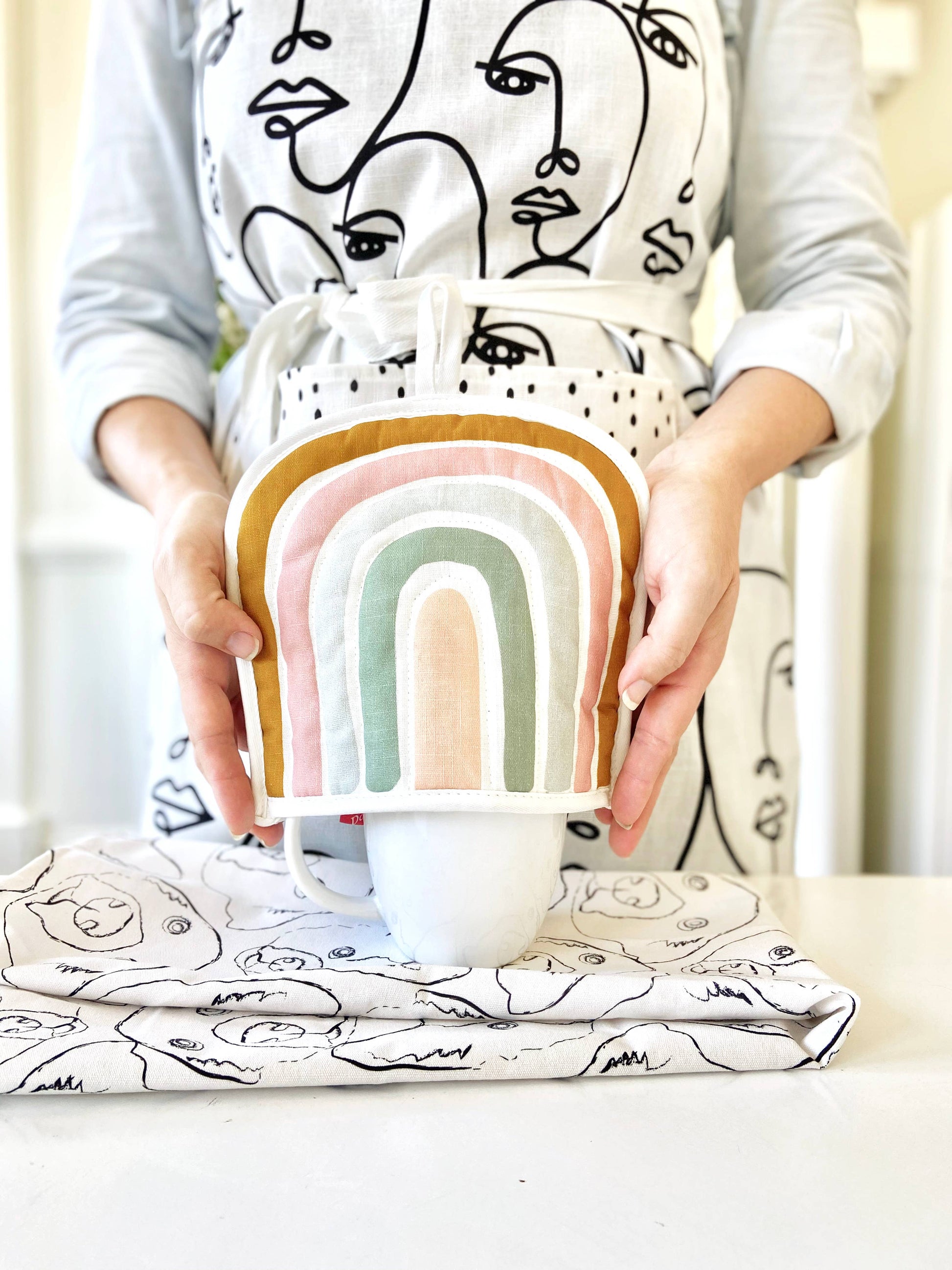 This fun rainbow potholder & cozy will keep your tea cup and kettle warm and also handles the hottest pots and pans. To shield hands from heat, our sturdy pot holder is quilted with heavyweight cotton slub. The perfect gift for a chef or anyone who wants to bring some cheer to the kitchen!