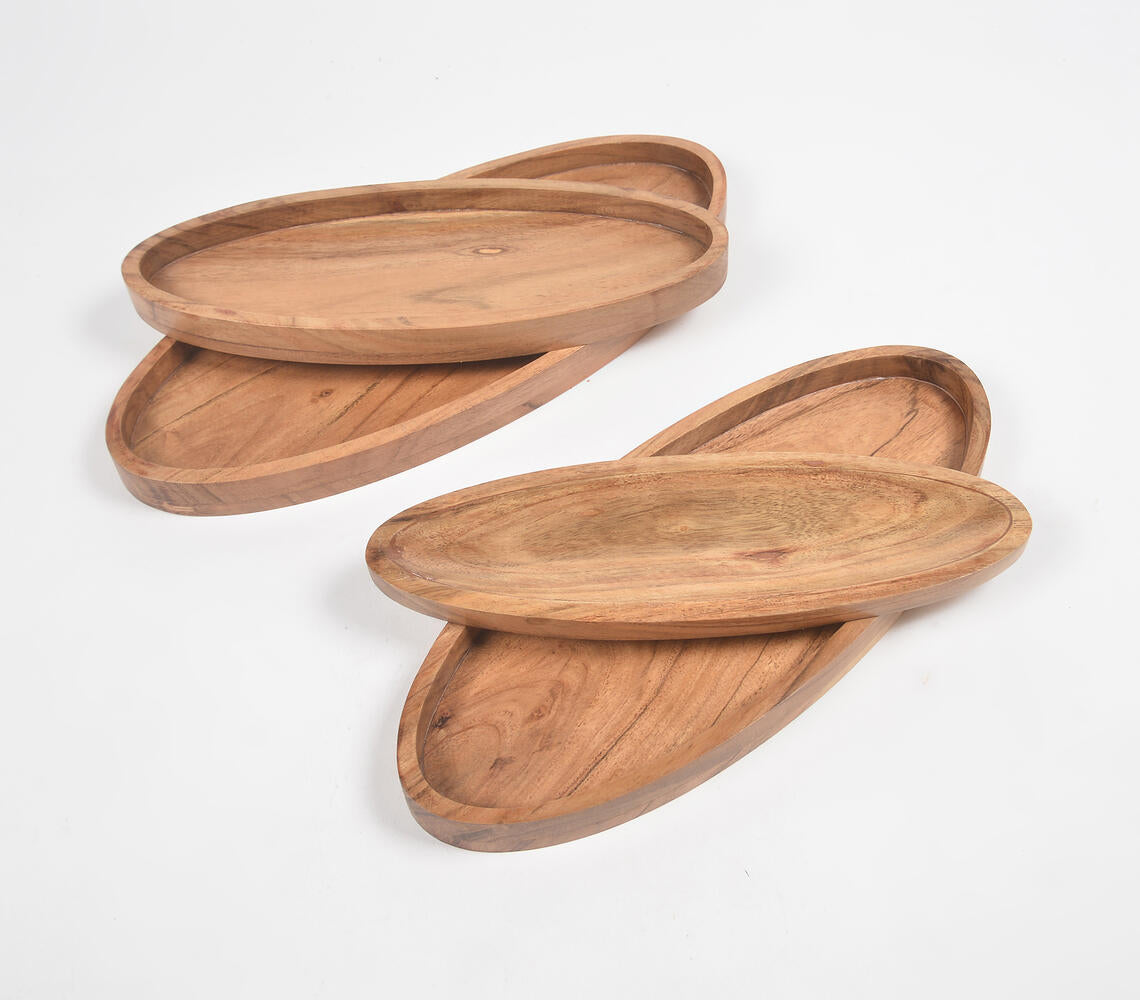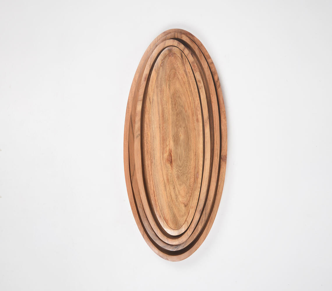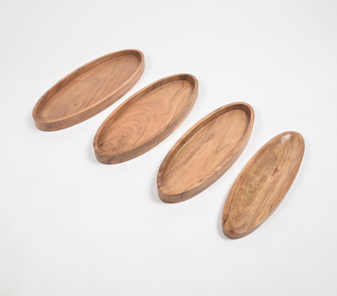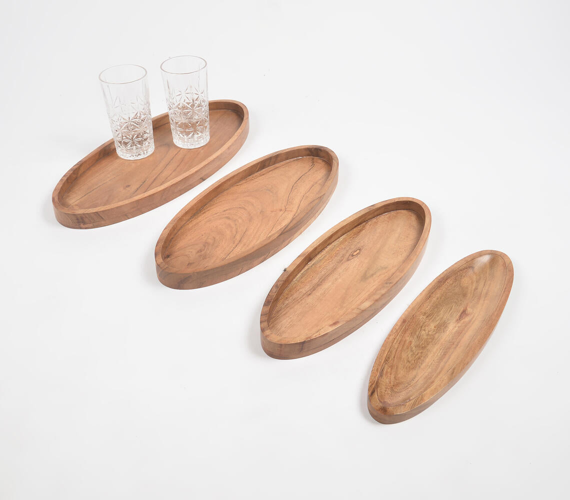 Farmhouse Raw Acacia Wood Oval Tray (Set of 4)
