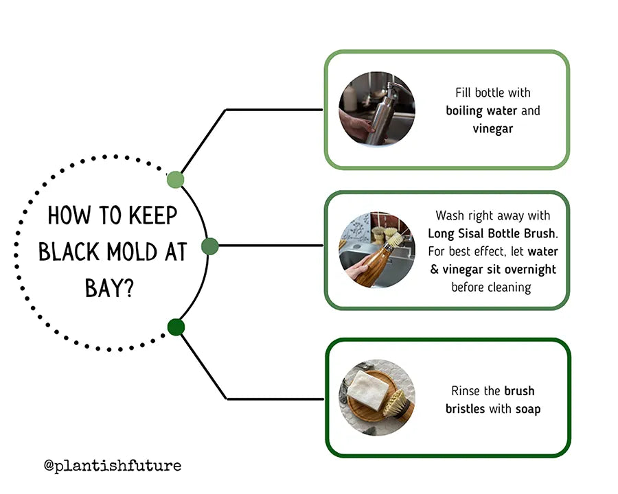 A reusable water bottle is far better than wasteful bottled water. However, if you do not clean your reusable water bottle regularly, then it could harbour harmful bacteria with black mould that could make you sick. Unwashed bottles can accumulate bacteria and can be dirtier than dog bowls and kitchen sinks.